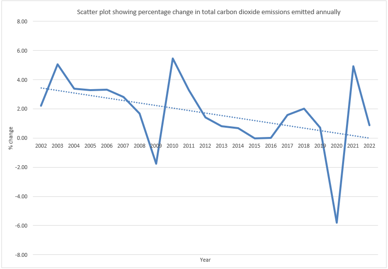 Figure 2- Scatter plot showing percentage change in total carbon dioxide emissions emitted annually.