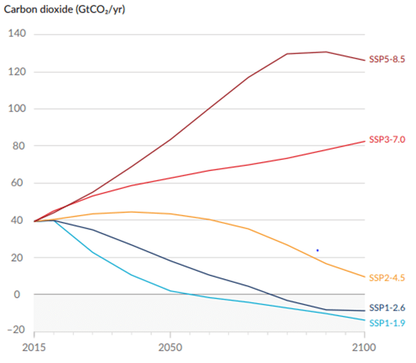 | SSP1- 2.6 | Low GHG emissions: CO2 emissions cut to net zero around 2075 | 1.7⁰C | 1.8⁰C | 1.3⁰C -2.4⁰C |