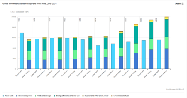 Figure 6- IEA graph showing history of clean energy and fossil fuel investment.